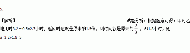 一辆货车从甲地匀速驶往乙地,到达后用了半小时卸货,随即匀速返回,已知货车返回的速度是它从甲地驶往乙地的速度的1.5倍.货车离甲地的距离y(千米)关于时间x(小时)的函数图象如图所示.则a= (小时).