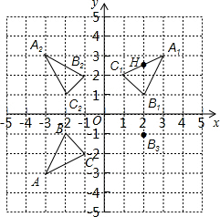 (3)点B关于y轴对称的点为B3,若将点B3向上平移h个单位,使其落在△A1B1C1的内部,指出h的取值范围.