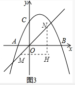 如图3,过点M作x轴的平行线,过点N作y轴的平行线,它们相交于点H.![]()