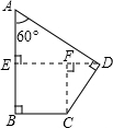 分析:过点D作DE⊥AB于点E,CF⊥DE于F,可得四边形BCFE为矩形,根据∠A=60°,可得出∠ADE=30°,根据∠D=90°,可求得∠CDE=60°,∠DCF=30°,在△CDF中,根据CD=9,分别求出CF,DF的长度,然后在△ADE中,求出AE的长度,继而可求出AB的长度.