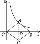 分析:连接AC交OB于D,由菱形的性质可知AC⊥OB.根据反比例函数中k的几何意义,得出△AOD的面积=1,从而求出菱形OABC的面积=△AOD的面积的4倍.