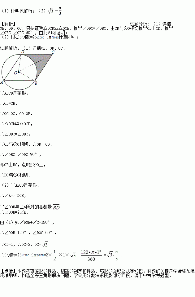 (1)求证:BC与⊙O相切;