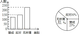 (2)赞成的500×25%=125人,无所谓的500-150-125=225人,无所谓的1-30%-25%=45%