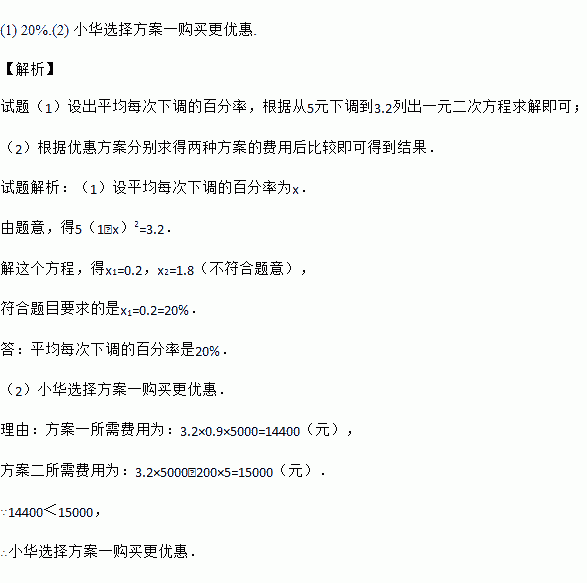 (1)求平均每次下调的百分率;