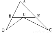 如图,在△ABC中,∠ABC与∠ACB的平分线交与点O, 过点O作MN∥BC,若AB=6,AC=9,则△AMN的周长为_____________。