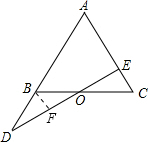 分析 过B作BF平行于AC,交DE于点F,由两直线平行内错角相等得到两对内错角相等,再由O为BC的中点,得到BO=CO,利用AAS可得出三角形BOF与三角形COE全等,根据全等三角形对应边相等可得出BF=EC,再由BF平行于AE,利用平行线等分线段定理列出比例式,然后根据已知条件即可得到结论.