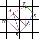 A、在△ACF中,AF=$\sqrt{{2}^{2}+{1}^{2}}$=$\sqrt{5}$≠$\sqrt{10}$,$\sqrt{5}$≠$\sqrt{2}$,$\sqrt{5}$≠2$\sqrt{2}$,则△ACF与△ABC不全等,故本选项错误;