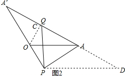 (3)由(2)可知$\frac{AA′}{OA′}$=$\sqrt{3}$,得出AA′=4$\sqrt{3}$,A′Q=AQ=2$\sqrt{3}$,由OP=$\frac{\sqrt{3}}{3}$AQ′,得出OP=2,PA′=4+2=6,作QE⊥PA′于E,解直角三角形求得A′E=$\frac{\sqrt{3}}{2}$A′Q=3,从而求得A′E=PE,得出△PQA′是等腰三角形,得出∠PQA=60°,即可证得△PAQ是等边三角形,然后解直角三角形即可求得.