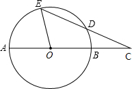 已知AB为⊙O的直径,弦ED与AB的延长线交于⊙O外一点C,且AB=2CD,∠C=25°,求∠AOE的度数.