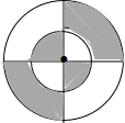 如图,两个同心圆中有两条互相垂直的直径,其中大圆的半径是2,则图中阴影部分的面积是(  )