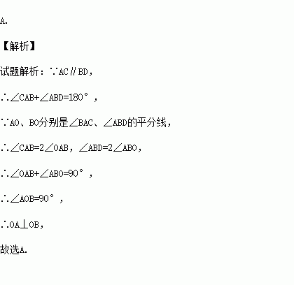 如图,直线AC∥BD,AO、BO分别是∠BAC、∠ABD的平分线,那么∠BAO与∠ABO之间的大小关系一定为( )