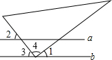 解答 解:由题意可知∠4=90°,且∠1+∠3+∠4=180°,∴∠3=180°-∠1-∠4=180°-38°-90°=52°,∵a∥b,∴∠2=∠3=52°,故答案为:52°.
