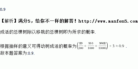 柳州市为了扩大绿化面积,进行了大量的树木移栽.下表记录的是在相同条件下某种幼树的棵数与成活棵树:依此估计这种幼树成活的概率是_____.(结果用小数表示,精确到0.1)