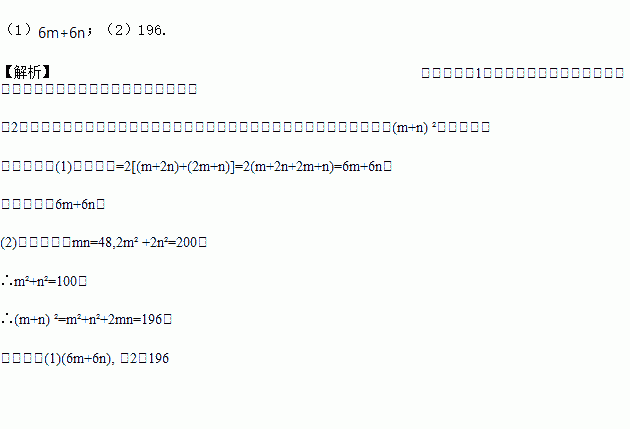(2)若每块小矩形的面积为48厘米2,四个正方形的面积和为200厘米2,试求(m+n)2的值.