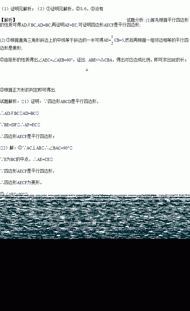 (2)①当E为BC的中点时,求证:四边形AECF是菱形;