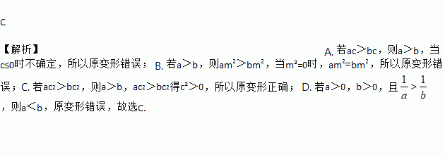 A. 若ac>bc,则a>b B. 若a>b,则am2>bm2