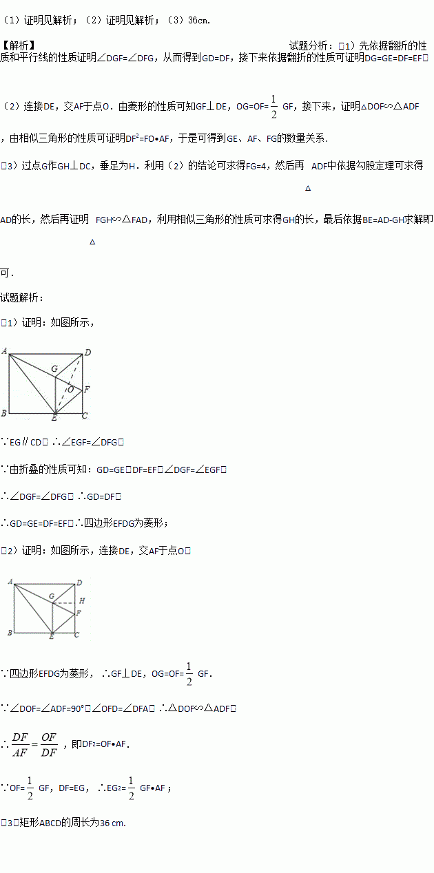 如图所示,将矩形ABCD沿AF折叠,使点D落在BC边的点E处,过点E作EG∥CD交AF于点G,连接DG.