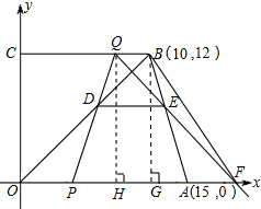 ¢Úµ±QP=QFʱ£¬Ôò$\sqrt{1{2}^{2}+£¨10-t-2t£©^{2}}=\sqrt{1{2}^{2}+F{H}^{2}}$=$\sqrt{1{2}^{2}+[15+2t-£¨10-t£©^{2}}$£¬