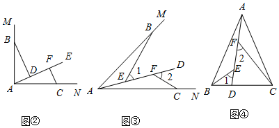 (2)证明:如图③,∵∠1=∠2=∠BAC,∠1=∠BAE+∠ABE,∠BAC=∠BAE+∠CAF,∠2=∠FCA+∠CAF,