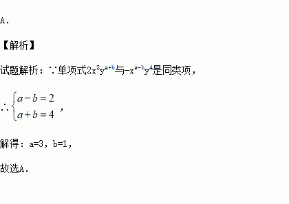 xa-by4是同类项,则a,b的值分别为( )