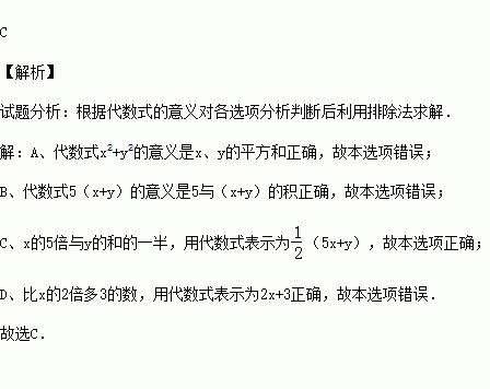 C.x的5倍与y的和的一半,用代数式表示为5x+![]()