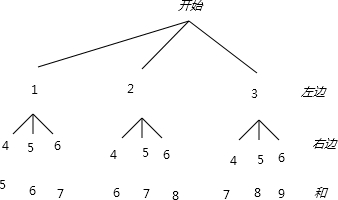 小明左边口袋中放有三张卡片,上面分别写着1、2、3,他右边口袋中也放有三张卡片,上面分别写着4、5、6,他任意地从两个口袋中各取出一张卡片,则所得两张卡片上写的数之和为偶数的概率是_______________.