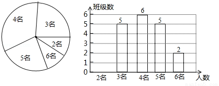 为了切实关注、关爱贫困家庭学生,某校对全校各班贫困家庭学生的人数情况进行了统计,以便国家精准扶贫政策有效落实.统计发现班上贫困家庭学生人数分别有2名、3名、4名、5名、6名,共五种情况.并将其制成了如下两幅不完整的统计图: