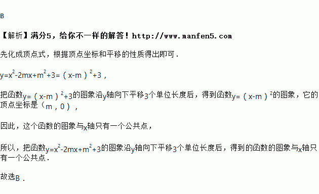 已知二次函数y=x2﹣2mx+m2+3(m是常数),把该函数的图象沿y轴平移后,得到的函数图象与x轴只有一个公共点,则应把该函数的图象( )