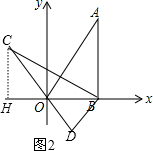 当△ABO绕点B逆时针旋转60°得到△CBD,如图2,作CH⊥x轴,则BC=AB=2$\sqrt{3}$,∠ABC=60°,![]()