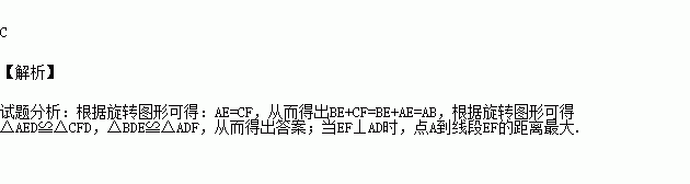 S△ABC; ③S四边形AEDF=AD•EF;④AD≥EF;⑤点A到线段EF的距离最大为1,其中正确结论的个数是( )