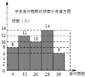 分析 (1)先根据8÷16%,求得抽查的部分学生的数量,再求得8≤答对题数<16的一组人数,并补全频数分布直方图,根据图形判断哪一组人数最多;