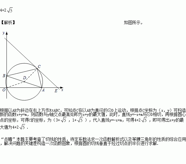 A(6,0)、B(0,2),以AB为斜边在右上方作Rt△ABC.设点C坐标为(x,y),则(x+y)的最大值为__.