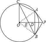 分析 (1)连接OA,OB,由已知条件得到△AOP≌△BOP,得到∠PBO=∠OAP=90°,即可得到结论;