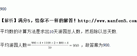 某公园对游园人数进行了10天的统计,结果有4天是每天900人游园,有2天是每天1100人游园,有4天是每天800人游园,则这10天中平均每天游园人数是_________.