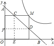 试题分析:作CE⊥x轴于E,DF⊥y轴于F,由直线的解析式为y=-x+m,易得A(0,m),B(m,0),得到△OAB等腰直角三角形,则△ADF和△CEB都是等腰直角三角形,设M的坐标为(a,b),则ab=