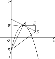 £¨2£©ÑÓ³¤EA£¬½»yÖáÓÚµãF£¬Ö¤³ö¡÷AFC¡Õ¡÷AED£¬½ø¶øÖ¤³ö¡÷ABF¡×¡÷DAE£¬ÀûÓÃÏàËÆÈý½ÇÐεÄÐÔÖÊ£¬Çó³öDE=4£»