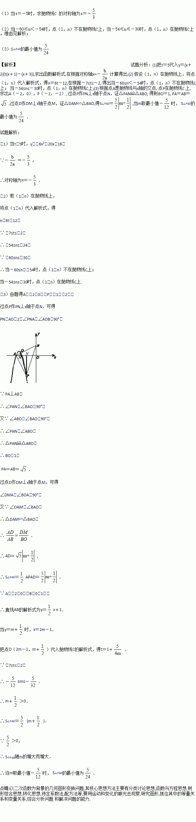 已知抛物线C:y=(x+2)[t(x+1)-(x+3)],其中-7≤t≤-2,且无论t 取任何符合条件的实数,点A,P 都在抛物线C 上.
