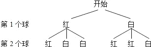 (2)∵两红的概率P=$\frac{1}{6}$,两白的概率P=$\frac{1}{6}$,一红一白的概率P=$\frac{2}{3}$,