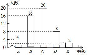 (1)由题意可知总人数=4÷8%=50人;扇形统计图中C等级所对应扇形的圆心角=20÷50×100%×360°=144°;