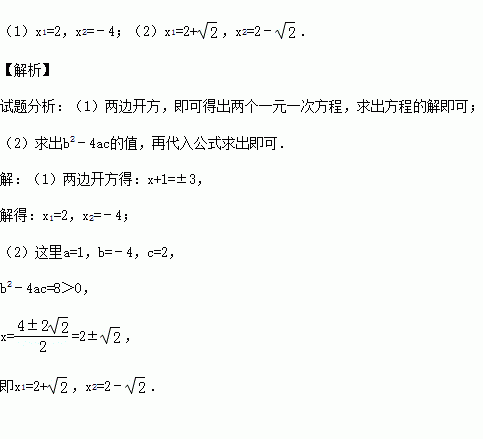 (2015•泗洪县校级模拟)(1)x2+4x+2=0