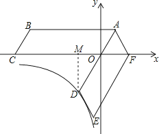 【题目】如图,四边形ABCO是平行四边形,OA=2,AB=6,点C在x轴的负半轴上,将ABCO绕点A逆时针旋转得到ADEF,AD经过点O,点F恰好落在x轴的正半轴上,若点D在反比例函数y=