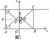 (3)运动过程中,四边形EFGH有可能为正方形,运动过程中,四边形ABCD是矩形时,四边形EFGH为正方形,如图2,根据角平分线的定义得到∠1=∠2=∠3=∠4=45°,推出△ADF,△AOE,△DNG是等腰直角三角形,根据等腰直角三角形的性质得到AF=DF,AE=DG,等量代换得到FE=FG,推出四边形EFGH是正方形,根据等腰直角三角形的性质即可得到结论.