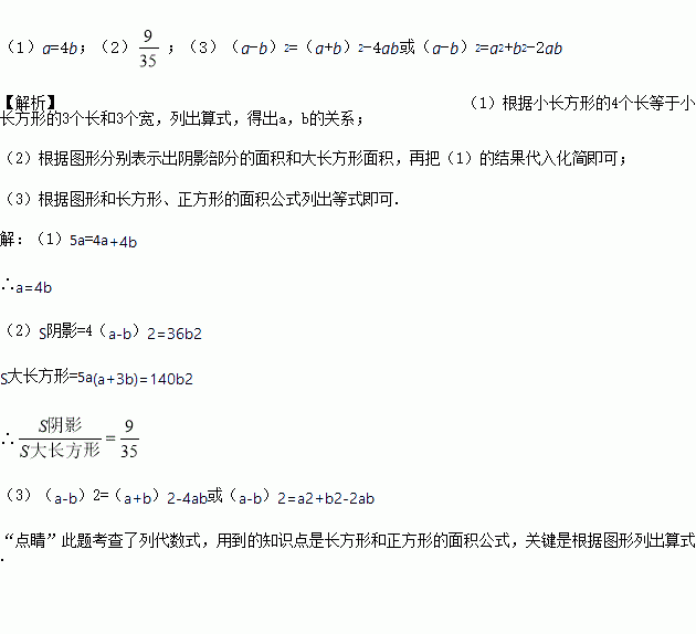 (3)请你仔细观察图中的一个阴影部分,根据它面积的不同表示方法写出含字母