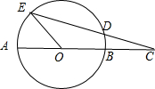如图,已知AB是⊙O的直径,∠AOE=60°,点C是AB延长线上一点,CE交⊙O于点D,且CD=OB,则∠C等于(  )