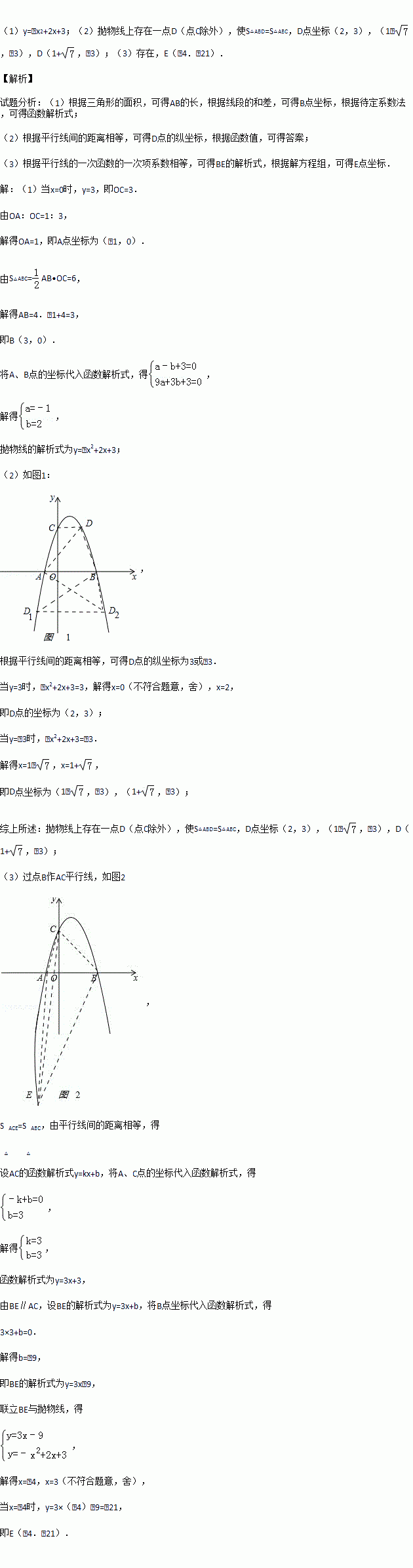 (3)抛物线上是否存在一点E(点B除外),使S△ACE=S△ABC?若存在,求出E点坐标;若不存在,说明理由.