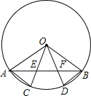 如图,点A、B、C、D在⊙O上,AB与OC、OD分别相交于点E、F,如果AE=BF,那么AC与BD相等吗?请说明理由.