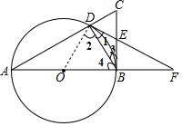 (2)由sin∠F=$\frac{BE}{EF}$=$\frac{1}{2}$知∠F=30°,在Rt△ODF中,根据OD=DFtan∠F可得答案.