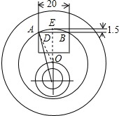 解答 解:过点O作OD⊥AB于点D,交⊙O于点E,连接OA,∵AB=20mm,DE=1.5mm,∴AD=$\frac{1}{2}$AB=10mm.设OA=r,则OD=r=1.5,∵AD2+OD2=OA2,即102+(r-1.5)2=r2,解得r≈34.1(mm).答:$\widehat{AB}$所在圆的半径为34.1mm.