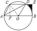 (2)图中阴影部分图形的周长是BE+DE+$\widehat{BD}$的长,根据(1)中的结论和题目中的条件,可以求得BE+DE+$\widehat{BD}$的长,从而可以解答本题.