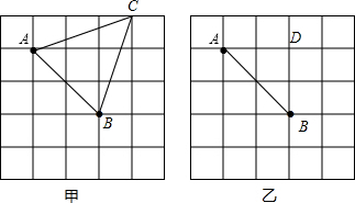 (1)在图甲中画出从点A出发的一条线段AB,使它的另一个端点B落在格点(即小正方形的顶点)上,且AB2=8;
